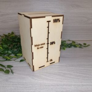 Originální dřevěná pokladnička s procentuální stupnicí (s možností vlastního textu)