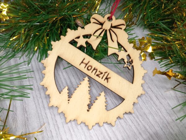 Christbaumschmuck mit Namen. Kreieren Sie einen einzigartigen Weihnachtsschmuck aus Holz für Ihren Baum! Diese natürliche Flasche verleiht Ihrer Weihnachtsdekoration einen Hauch von Originalität und Charme. Durch die Möglichkeit einen eigenen Text hinzuzufügen eignet es sich ideal als persönliche Dekoration oder schönes Geschenk für Ihre Liebsten.