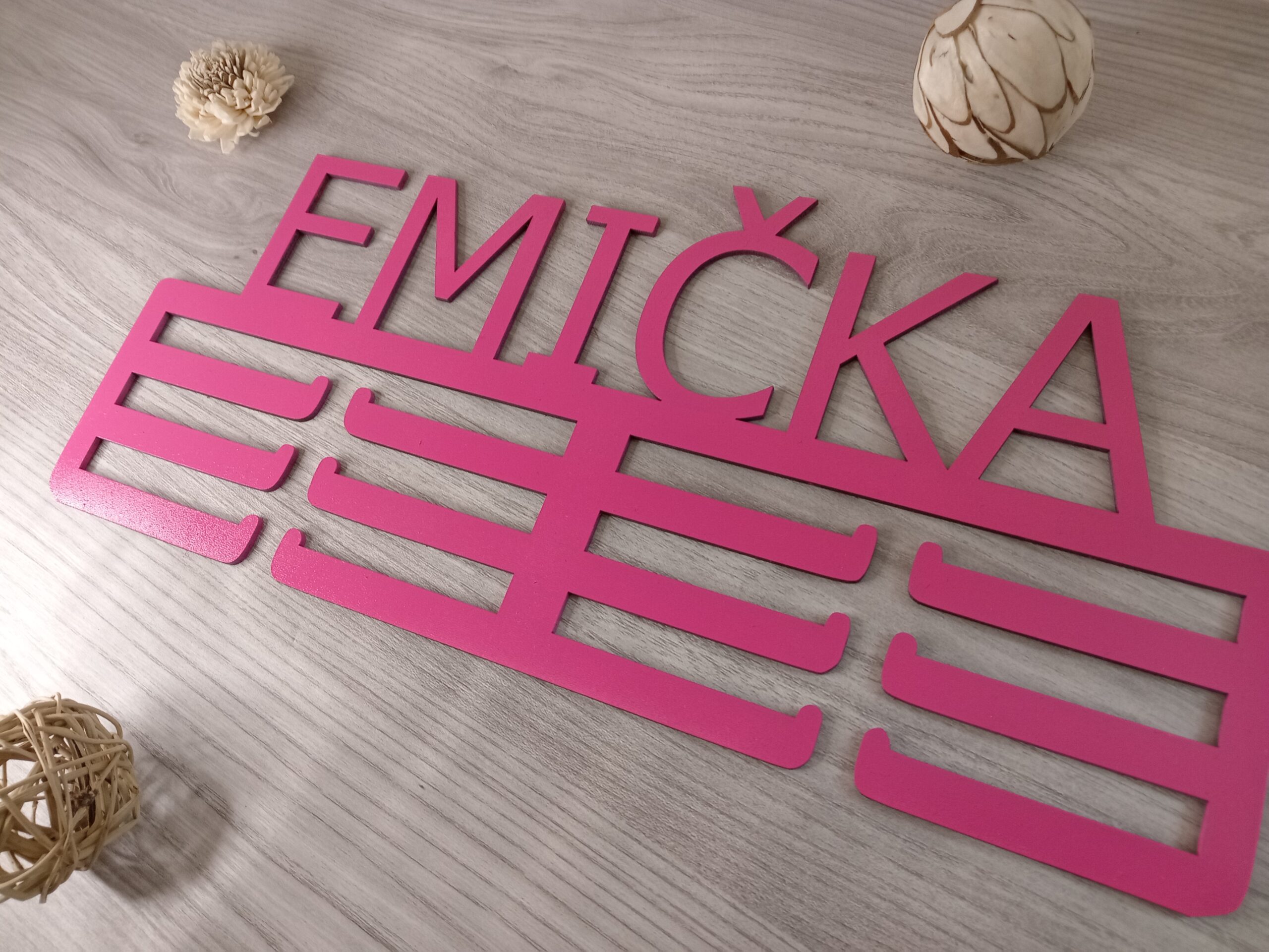 Medaillenaufhänger mit Namen ist eine großartige Lösung zum Organisieren und Präsentieren Ihrer sportlichen Erfolge. Dieser Kleiderbügel ist gemacht aus hochwertiger Faserplatte und bietet die Möglichkeit benutzerdefinierter Namenszuschnitt, macht es zu einem einzigartigen und persönlichen Geschenk. Das Kleiderbügeldesign ist universell und passt in jedes Interieur. Erhältlich in drei Größen und drei Farben – Schwarz, Weiß und Walnuss.