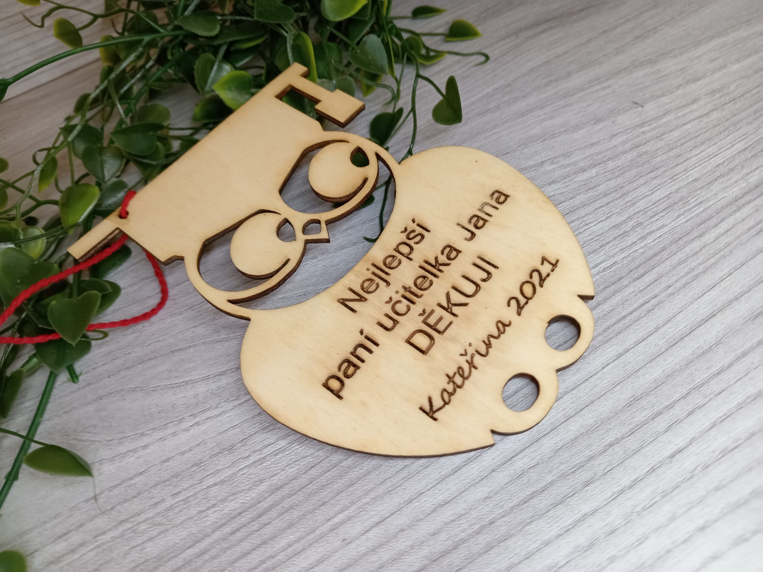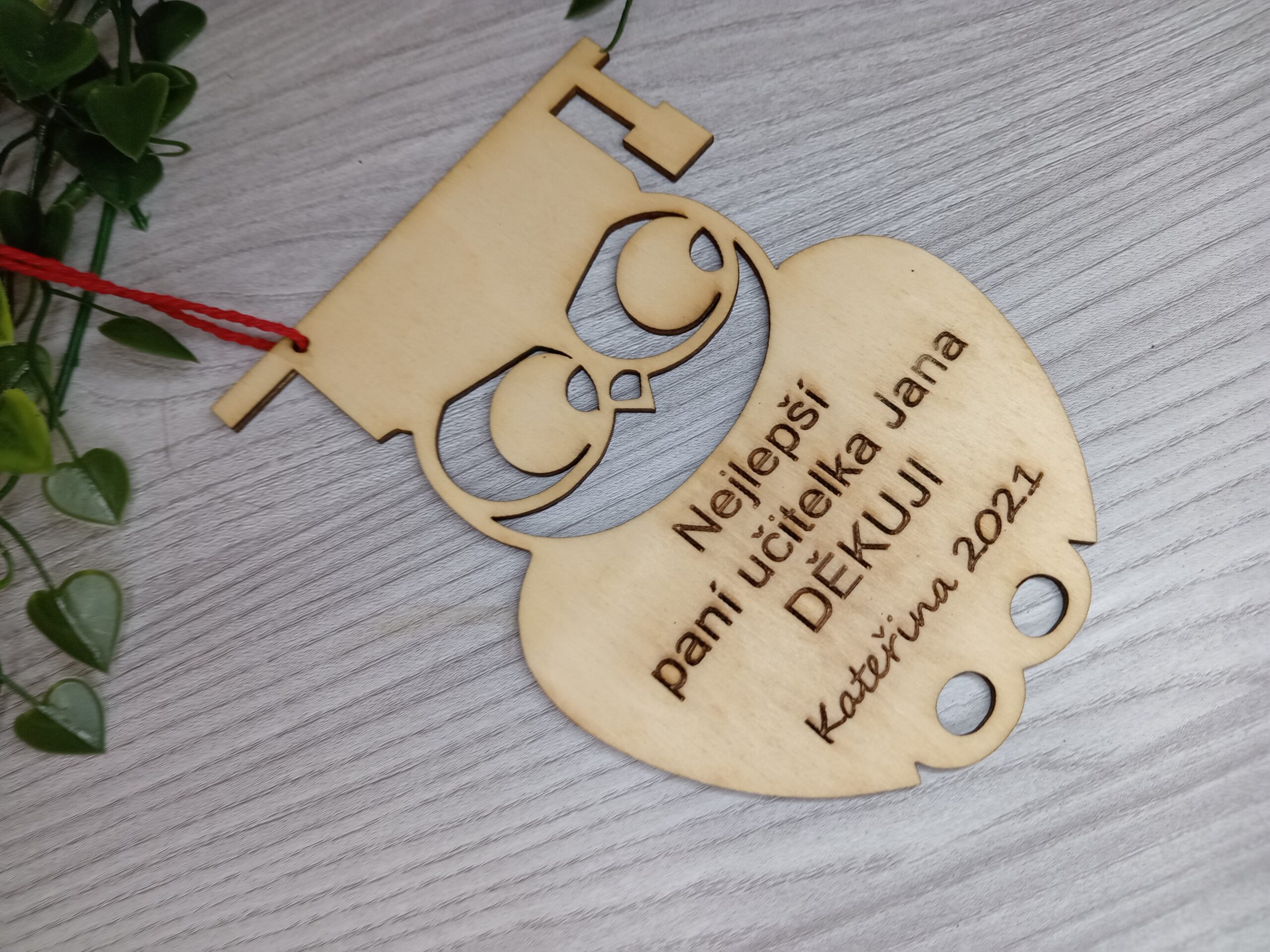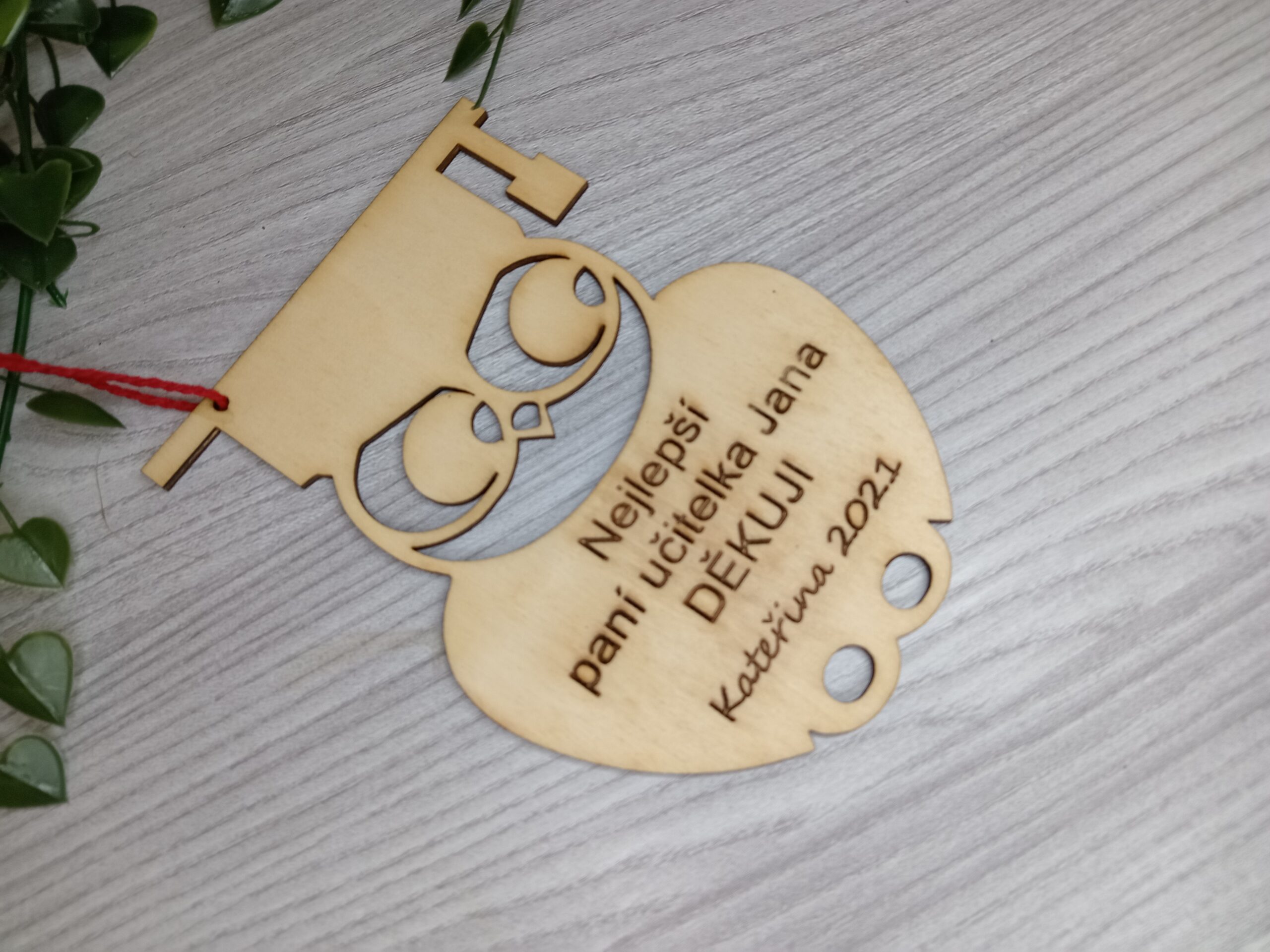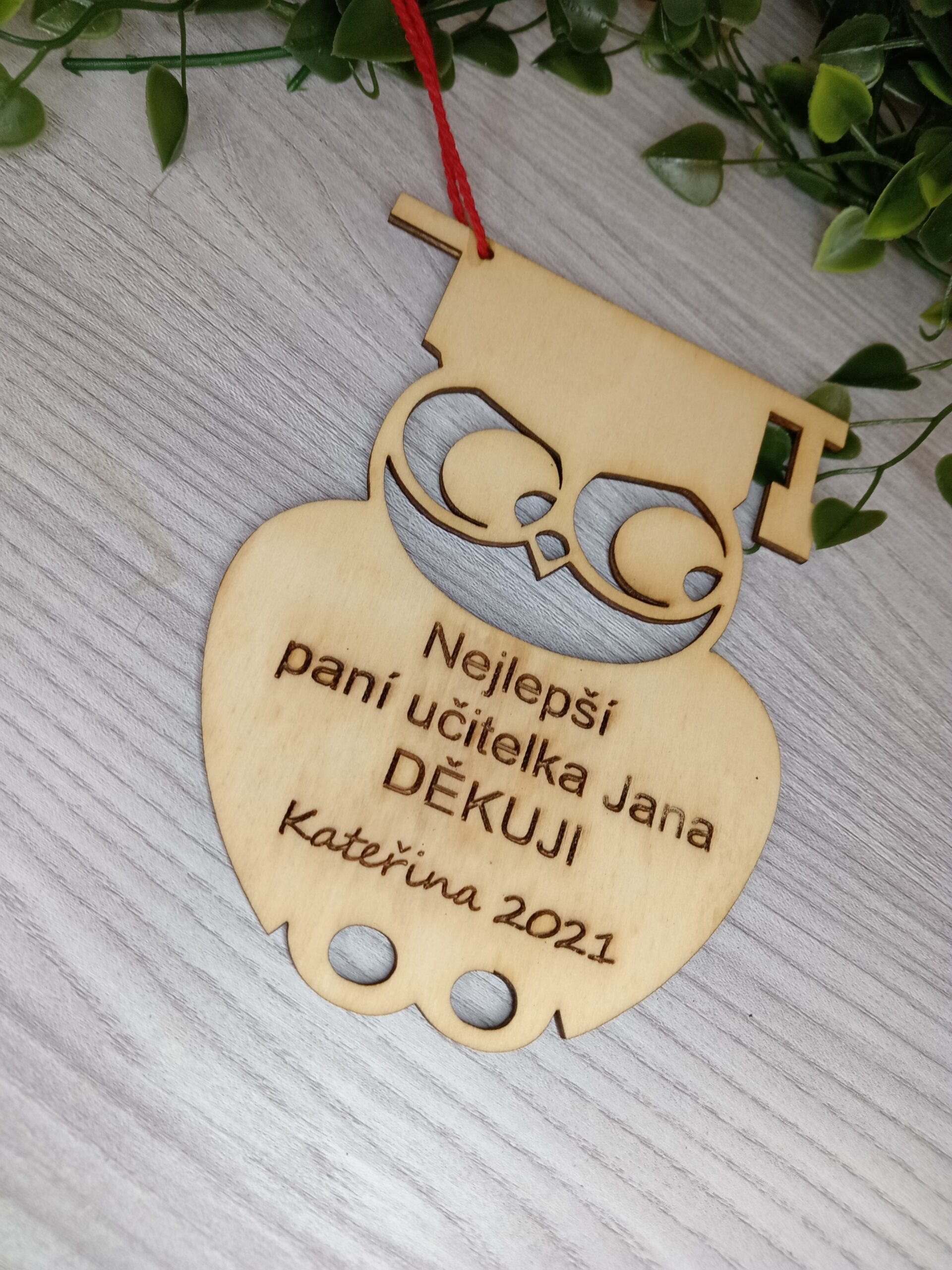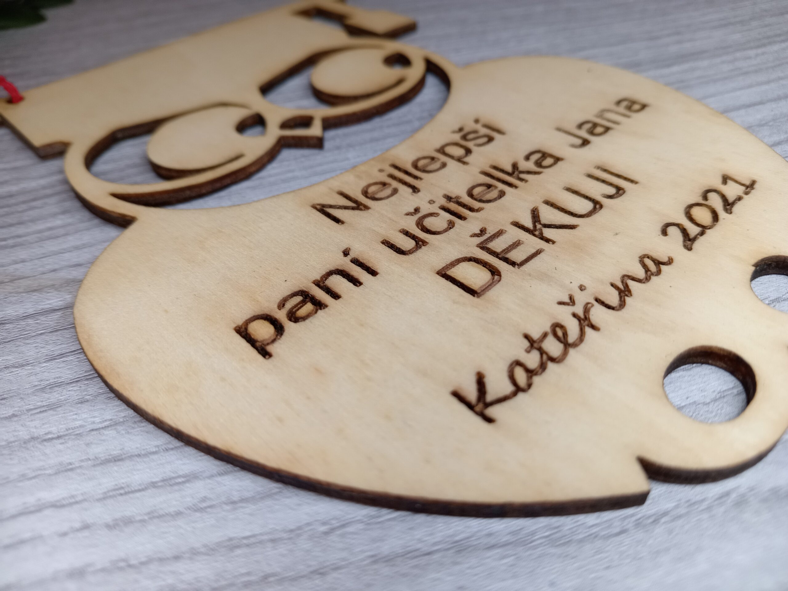 Dárek pro učitele na konci roku s možností gravíroání vlastního textu je ideální pro vyjádření poděkování a vděčnosti. Sova je vyrobena z kvalitní topolové překližky, přináší nádech přírody do každého interiéru.
