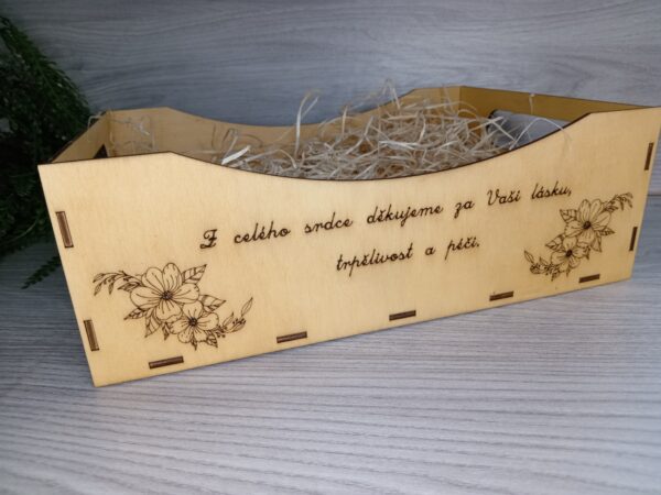 Dřevěná dárková bedýnka s VLASTNÍM TEXTEM.