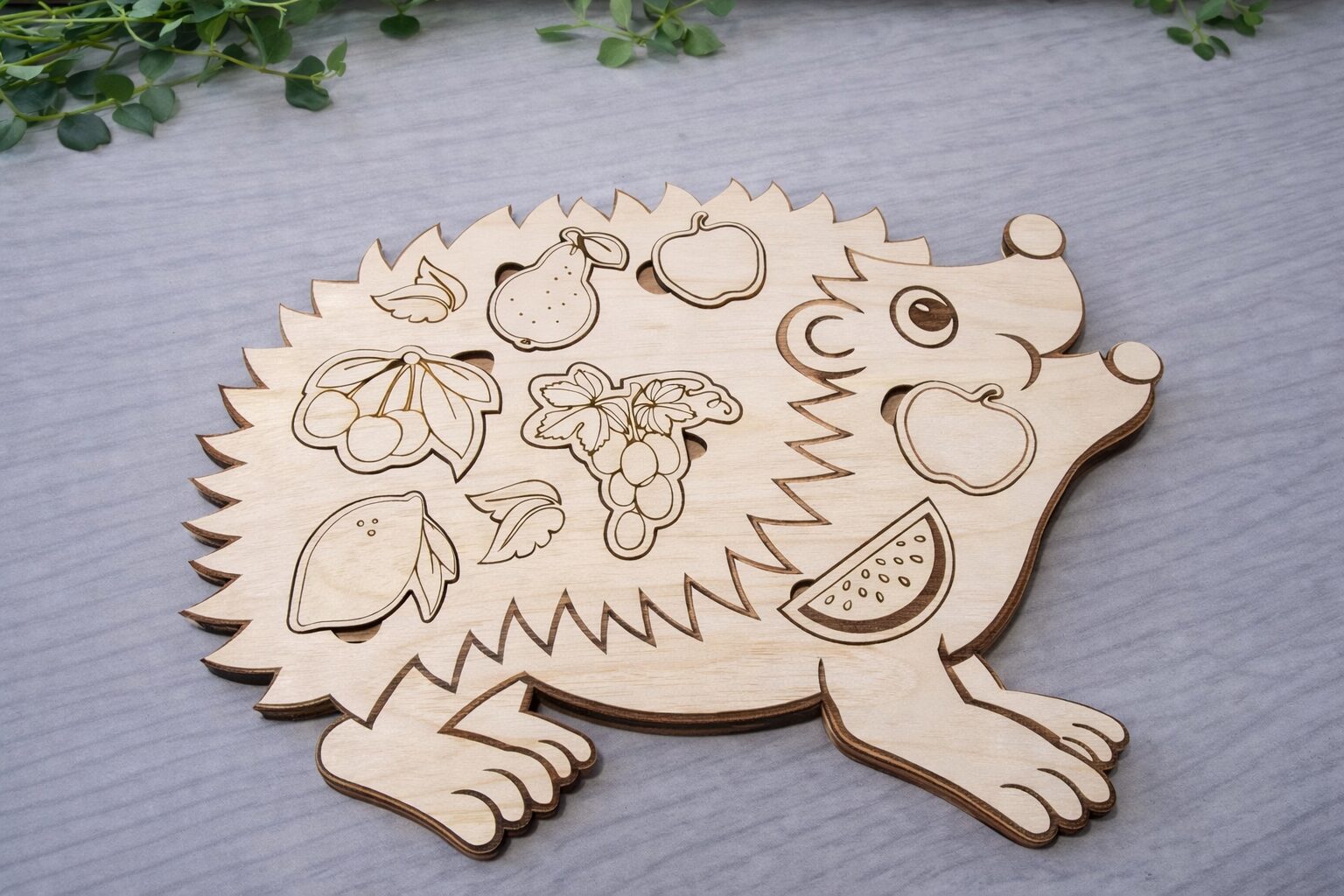 - Vkládačka ve tvaru ježka je navržena tak, aby byla nejen funkční, ale i esteticky přitažlivá. Laserové gravírování přidává na detailnosti a kráse každého kousku, čímž se hračka stává jedinečnou a atraktivní.