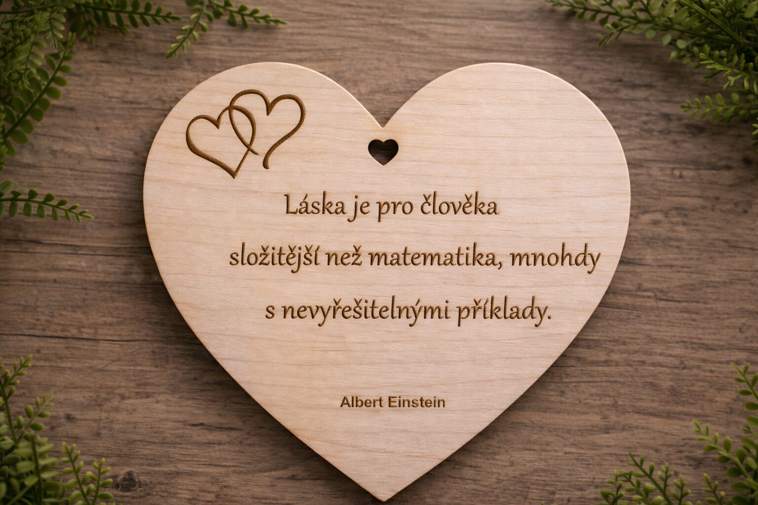 Dřevěné srdce dekorace na zeď – Albert Einstein.
