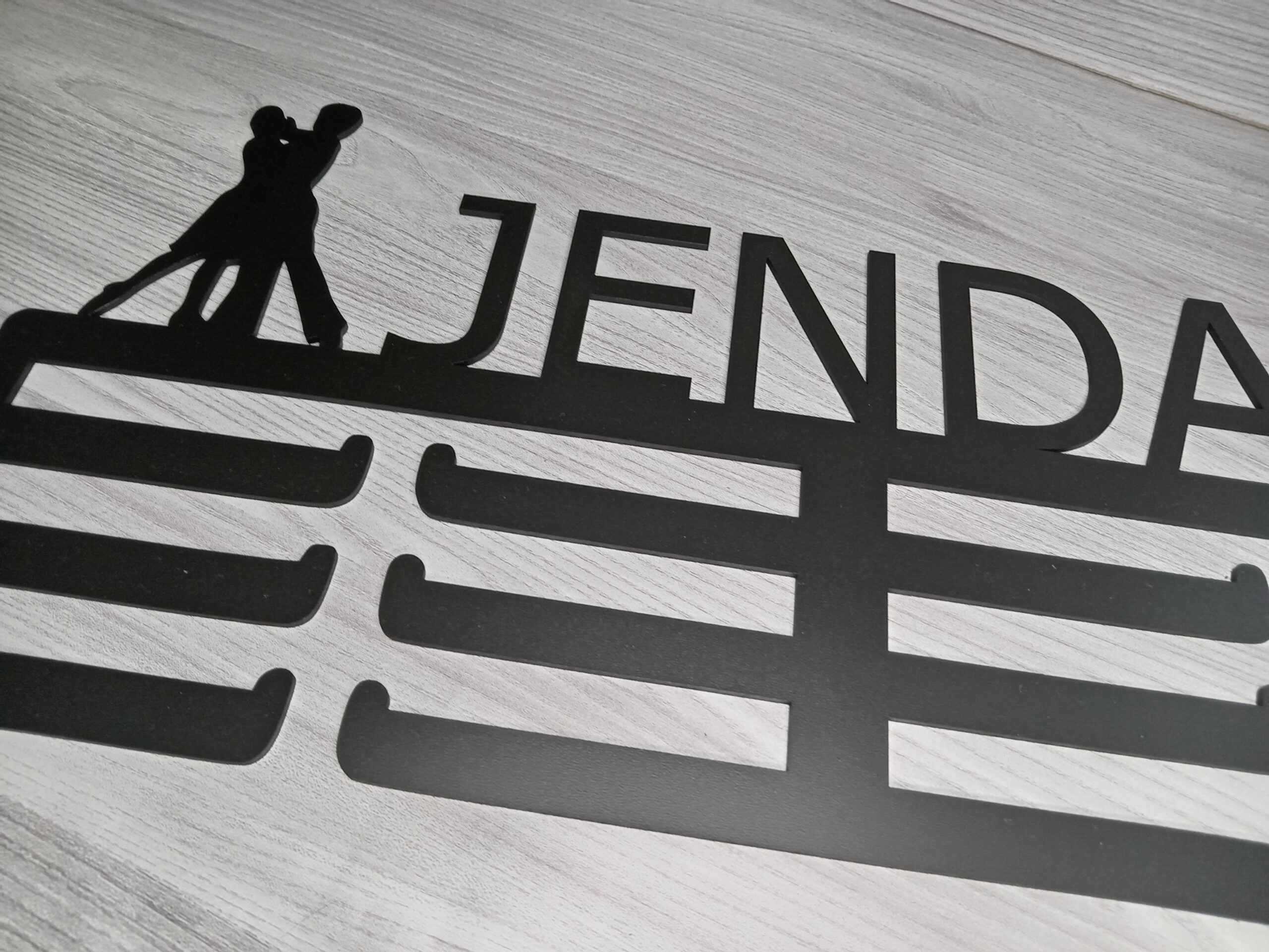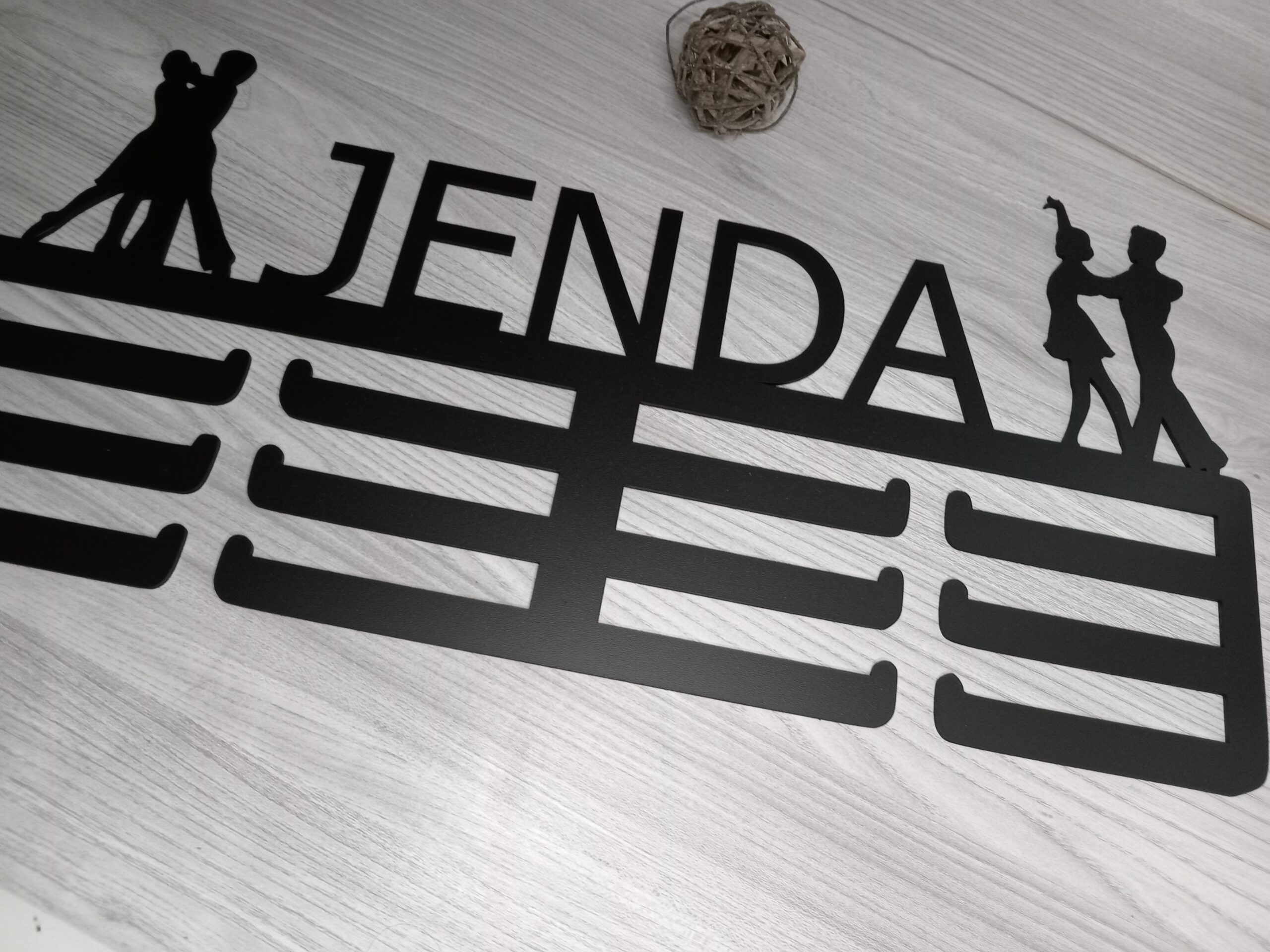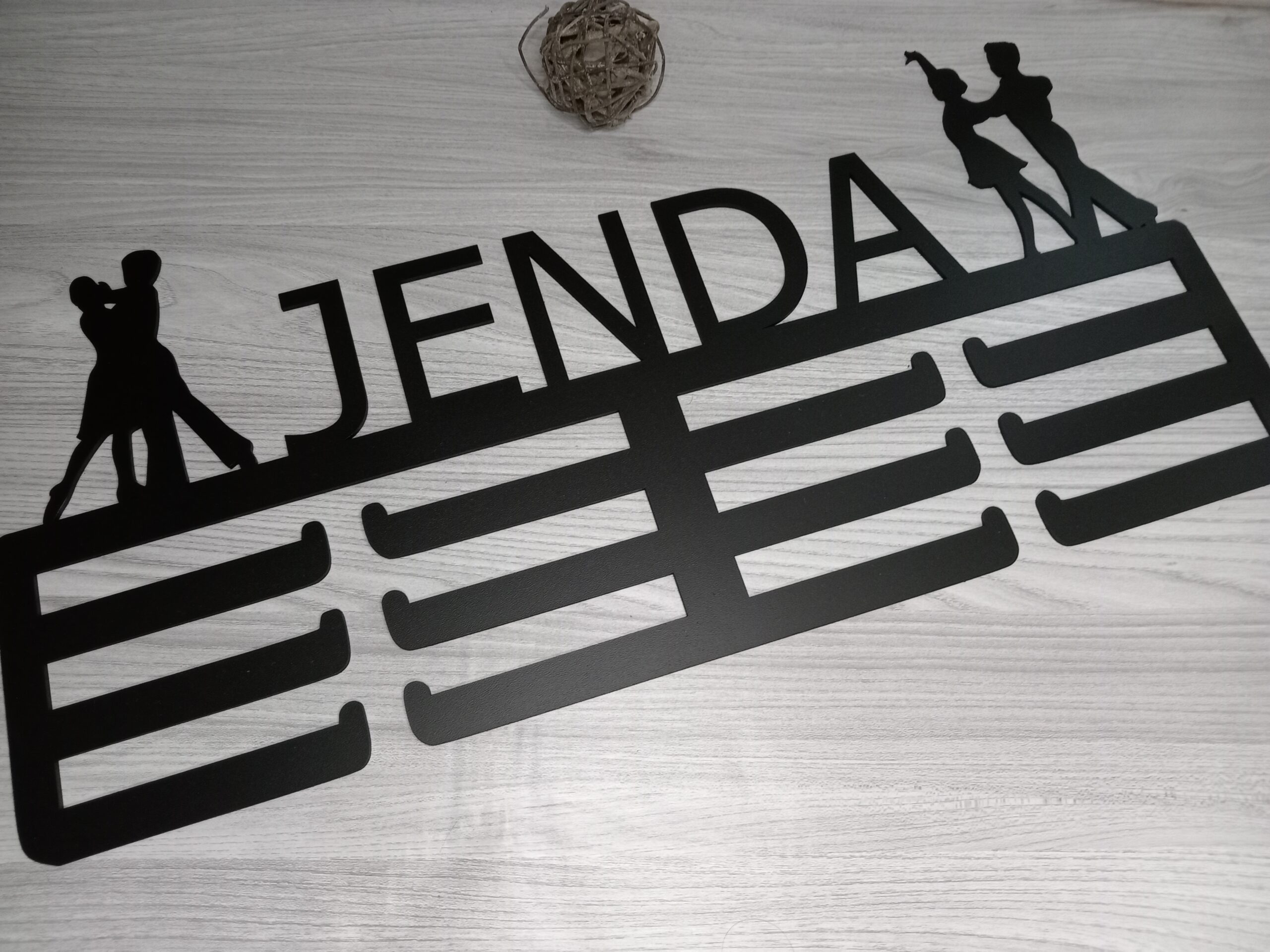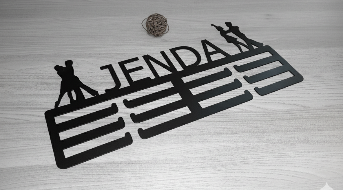 Dřevěný věšák na medaile Tanec je perfektním dárkem pro všechny milovníky tance. Tento stylový věšák je vyroben z kvalitní dřevovláknité desky a umožňuje řezání jména na zakázku, což z něj činí jedinečný a osobní dárek. Design věšáku je inspirován tanečním stylem a dodá každému pokoji taneční atmosféru. Je dostupný ve třech velikostech.