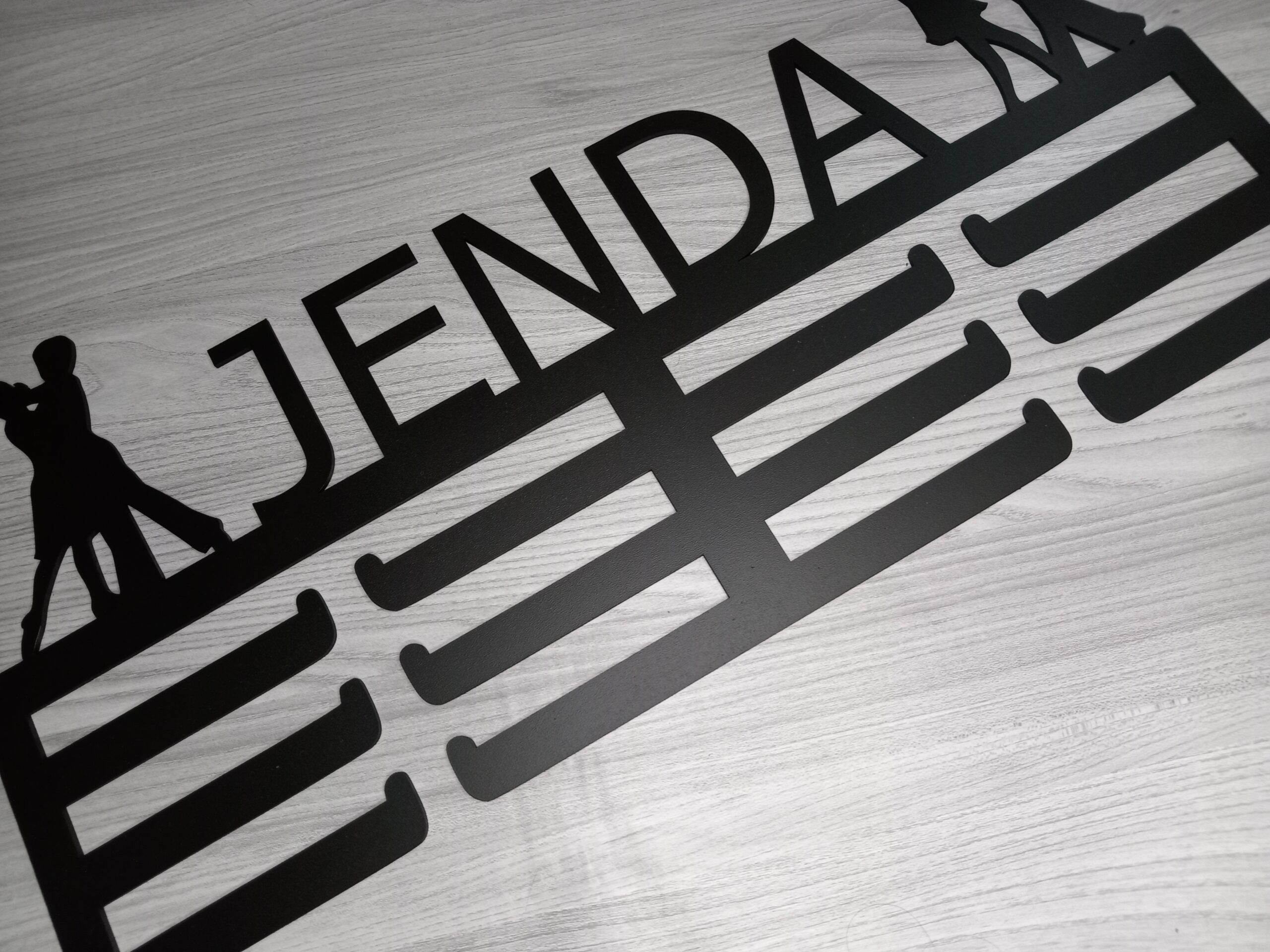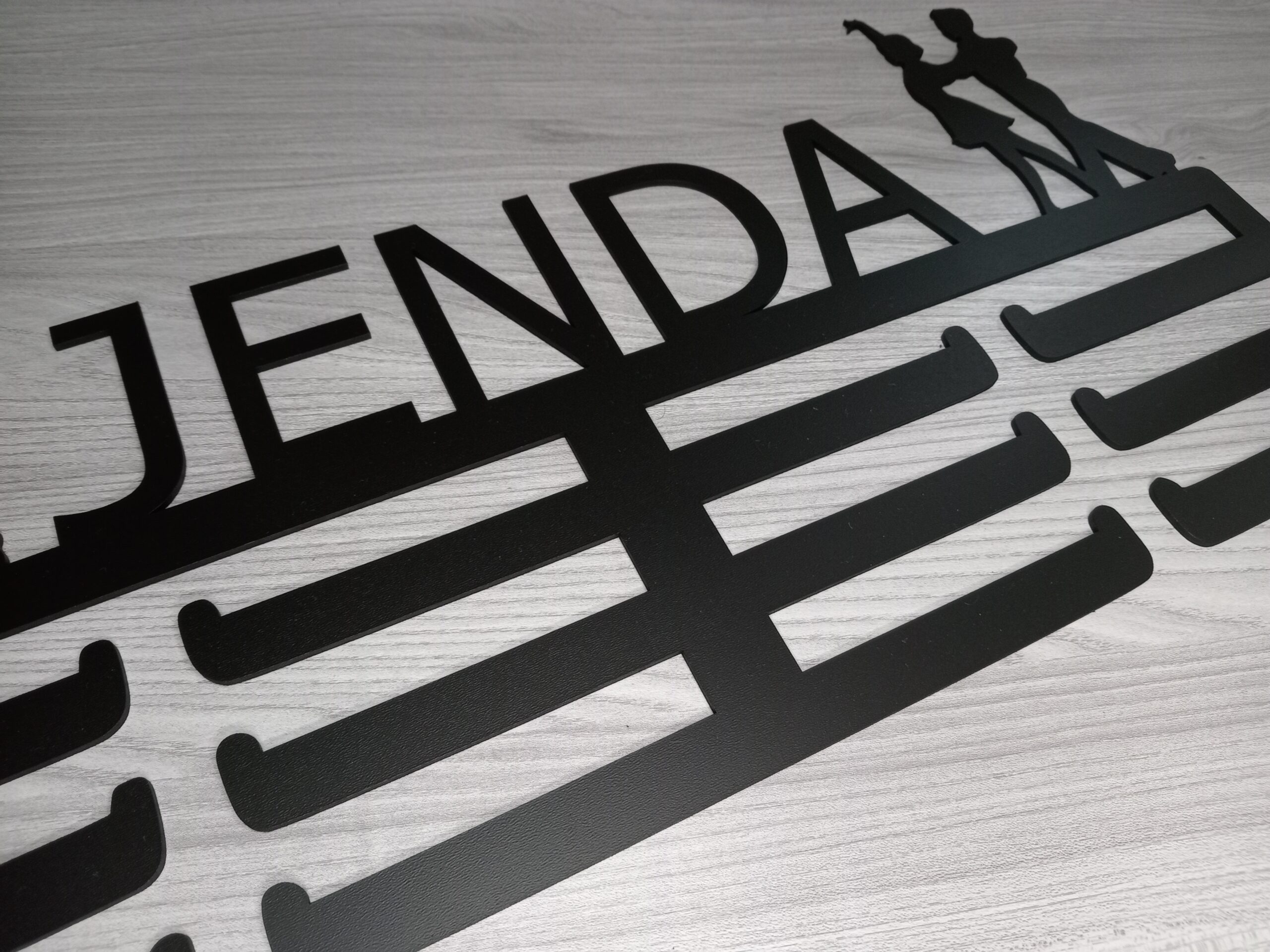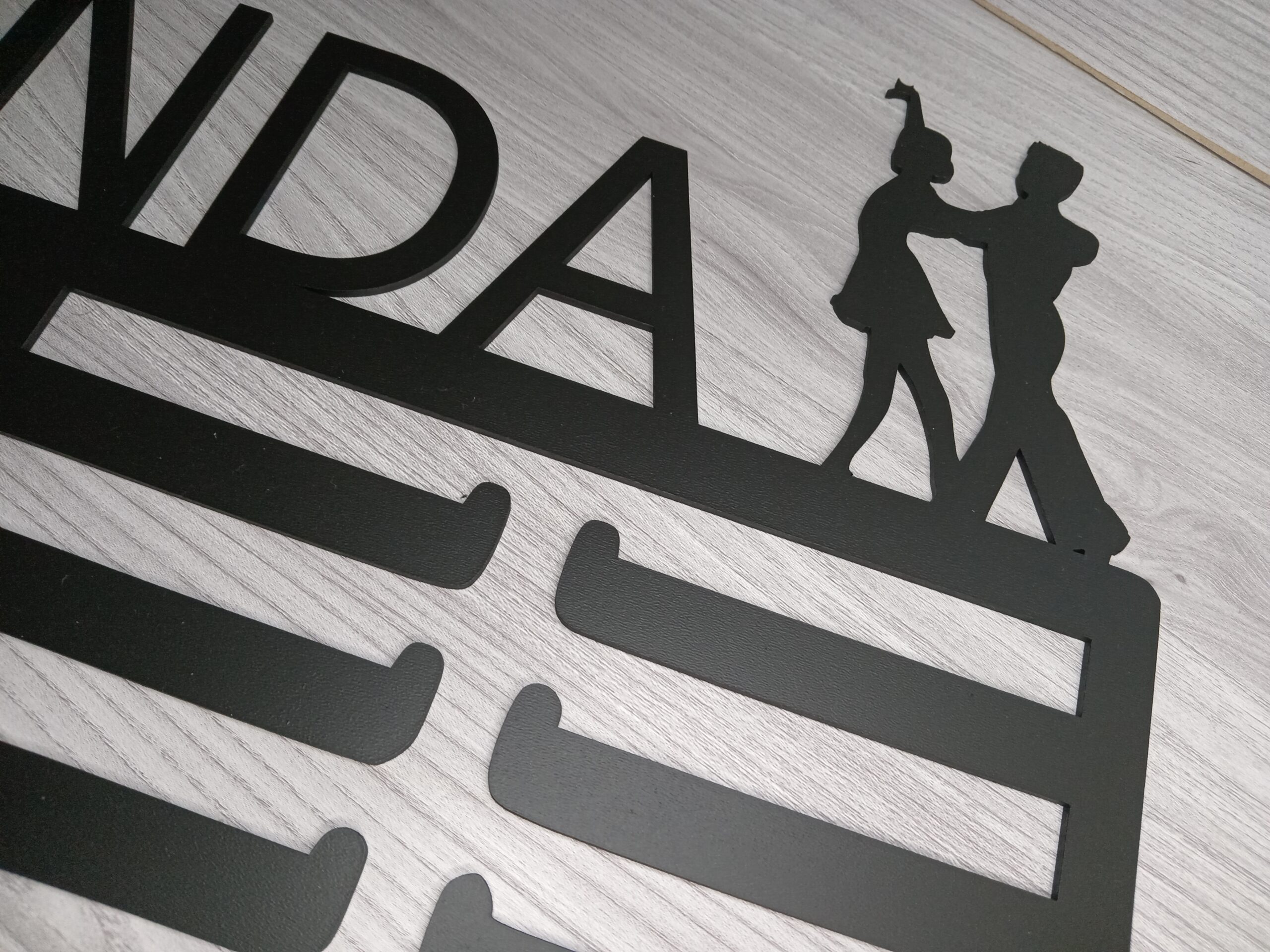 Dřevěný věšák na medaile Tanec je perfektním dárkem pro všechny milovníky tance. Tento stylový věšák je vyroben z kvalitní dřevovláknité desky a umožňuje řezání jména na zakázku, což z něj činí jedinečný a osobní dárek. Design věšáku je inspirován tanečním stylem a dodá každému pokoji taneční atmosféru. Je dostupný ve třech velikostech.