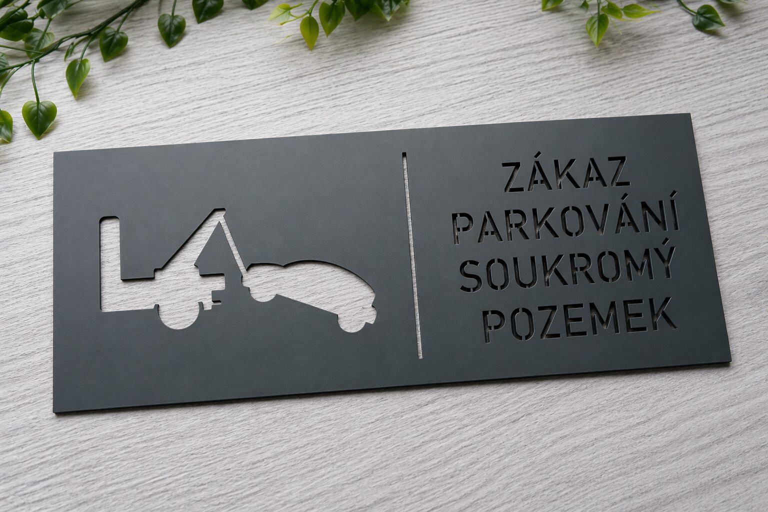 Zvolte si vlastní nápis – například „ZÁKAZ PARKOVÁNÍ“, „SOUKROMÝ POZEMEK“ nebo jiný text dle vašeho přání. Díky minimalistickému designu cedule nepůsobí rušivě, ale zároveň spolehlivě upozorní každého řidiče.